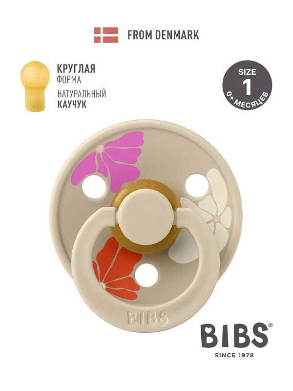 Пустышка латексная Bibs Studio Colour - Flower Child, 0+ 10014245 Vanilla