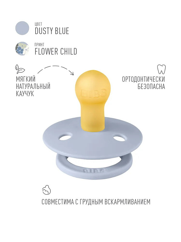 Пустышка латексная Bibs Studio Colour - Flower Child, 0+ 10014304 Dusty BlueНет оценокХарактеристики