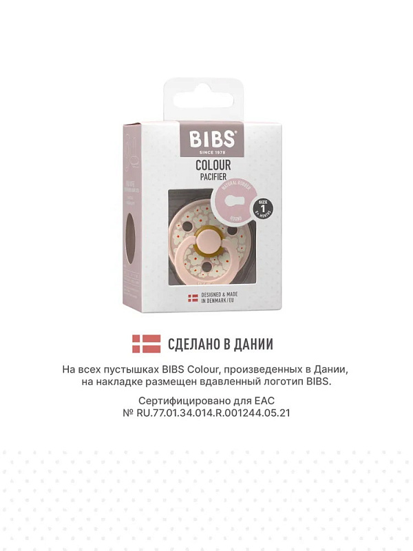 Пустышки BIBS изготавливаются из экологичных, на 100% безопасных материалов. Сосок у пустышки сделан из натурального каучука (латекса), а защитная накладка (шилдик) — из полипропилена. Изогнутая форма накладки с отверстиями минимизирует контакт с чувствительной и нежной кожей вокруг рта ребенка.