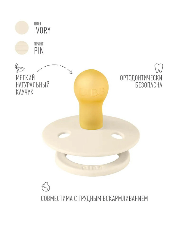 Пустышка латексная Bibs Studio Colour - Pin, 0+ 10015245 Ivory Vanilla