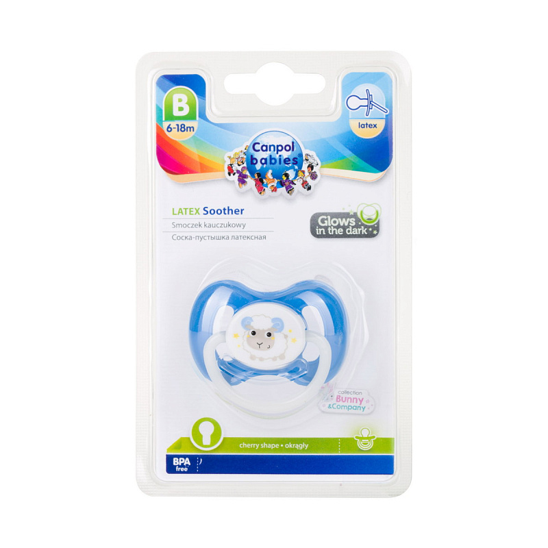 Пустышка латексная Canpol babies Bunny&Company круглая 6-18 мес 23/278 голубойНет оценокХарактеристики