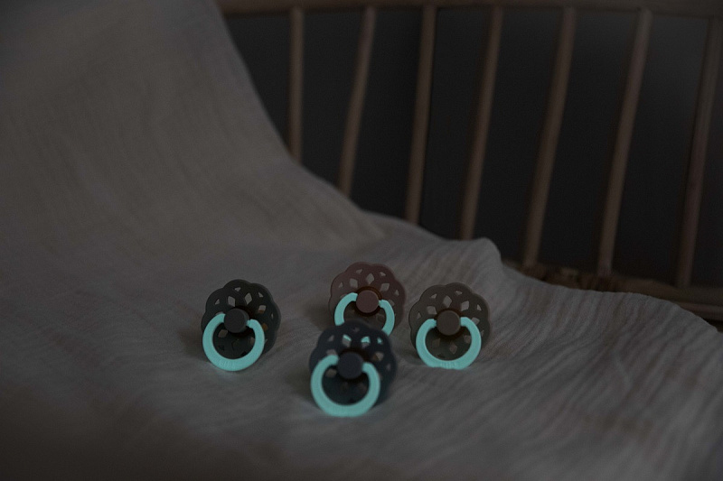 Колечко пустышки Boheme Glow излучает мягкий свет и её легко найти в тёмной комнате. Достаточно двух минут под лампой, чтобы «зарядить» пустышку. Свечение колечку придают кристаллы люминофоров.