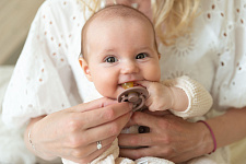 Латексная соска-пустышка Paomma изготовлена из природного материала, не вызывающего аллергических реакций и рекомендована для использования с 0 до 6 месяцев. Круглая естественная форма пустышки “вишня” идеально подходит под форму нёба. Пластиковая насадка специальной формы не соприкасается с ртом новорожденного и не провоцирует раздражений. Пустышка имитирует как форму, так и мягкость материнской груди, поэтому малыши принимают её сразу и успокаиваются. Классический внешний вид пустышки является одновременно вневременным и элегантным.