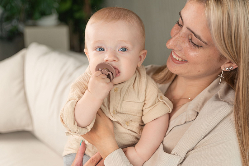 Латексная соска-пустышка Paomma изготовлена из природного материала, не вызывающего аллергических реакций и рекомендована для использования с 0 до 6 месяцев. Круглая естественная форма пустышки “вишня” идеально подходит под форму нёба. Пластиковая насадка специальной формы не соприкасается с ртом новорожденного и не провоцирует раздражений. Пустышка имитирует как форму, так и мягкость материнской груди, поэтому малыши принимают её сразу и успокаиваются. Классический внешний вид пустышки является одновременно вневременным и элегантным.