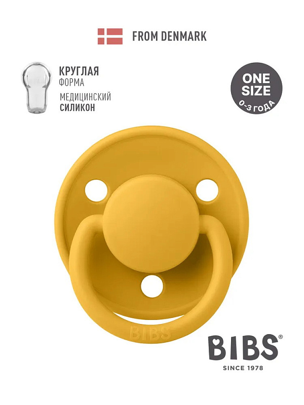 Классический круглый сосок пустышки BIBS De Lux по форме и размеру напоминает сосок матери, благодаря чему она идеально подходит малышам с рождения.
