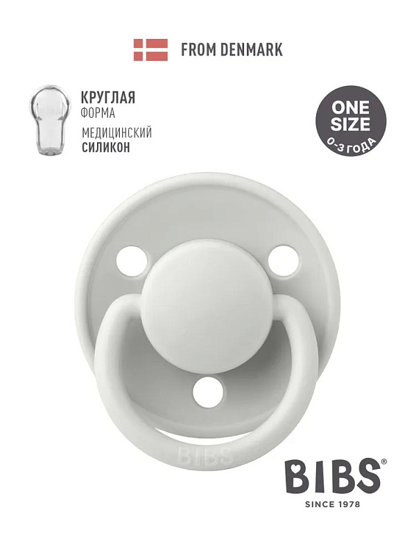 Классический круглый сосок пустышки BIBS De Lux по форме и размеру напоминает сосок матери, благодаря чему она идеально подходит малышам с рождения.