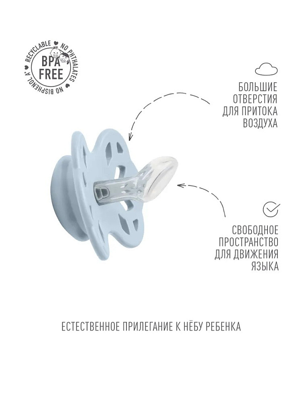 Дизайн пустышки Infinity вдохновлен красивой и непредсказуемой скандинавской природой. Анатомическая форма соска обеспечивает естественное прилегание пустышки к небу ребенка и удобное расположение языка.