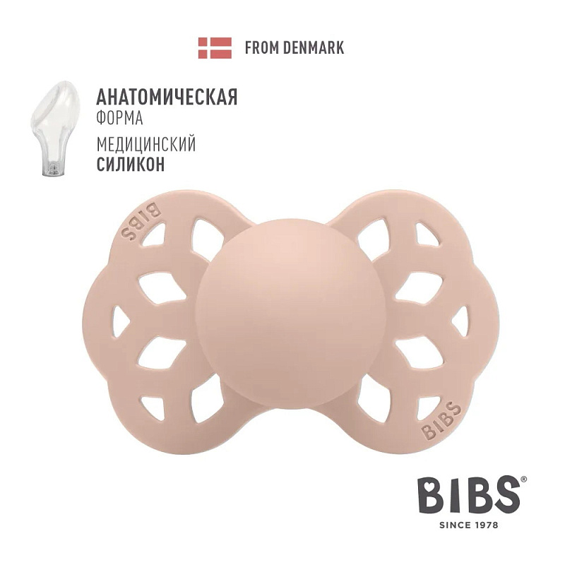 Пустышки BIBS изготавливаются из экологичных, на 100% безопасных материалов. Сосок выполнен из гипоаллергенного силикона без запаха и вкуса, а накладка (шилдик) — из полипропилена. Силиконовая пустышка обладает высокой прочностью и хорошо массирует дёсны во время прорезывания зубов. Дизайн накладки продуман таким образом, чтобы минимизировать контакт с чувствительной и нежной кожей вокруг рта ребенка.