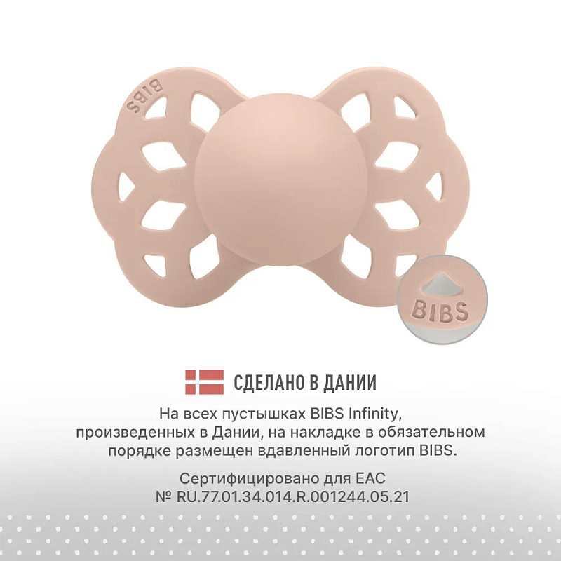 Пустышка силиконовая Bibs Infinity Anatomical, 0+ 421244 Blush