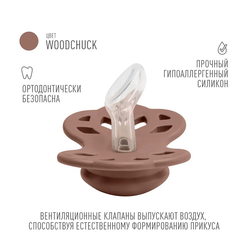 Пустышка силиконовая Bibs Infinity Anatomical, 0+ 421247 Woodchuck