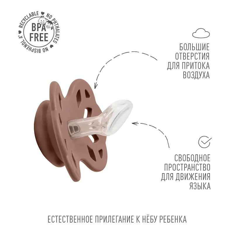 Дизайн пустышки Infinity вдохновлен красивой и непредсказуемой скандинавской природой. Анатомическая форма соска обеспечивает естественное прилегание пустышки к небу ребенка и удобное расположение языка.