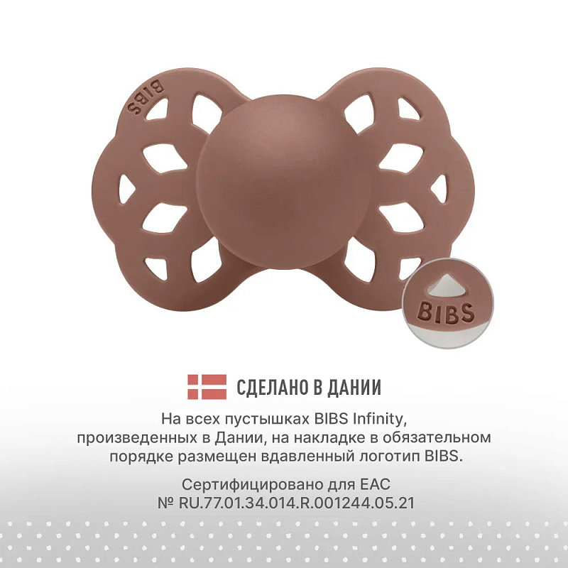 Пустышки BIBS изготавливаются из экологичных, на 100% безопасных материалов. Сосок выполнен из гипоаллергенного силикона без запаха и вкуса, а накладка (шилдик) — из полипропилена. Силиконовая пустышка обладает высокой прочностью и хорошо массирует дёсны во время прорезывания зубов. Дизайн накладки продуман таким образом, чтобы минимизировать контакт с чувствительной и нежной кожей вокруг рта ребенка.