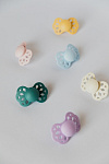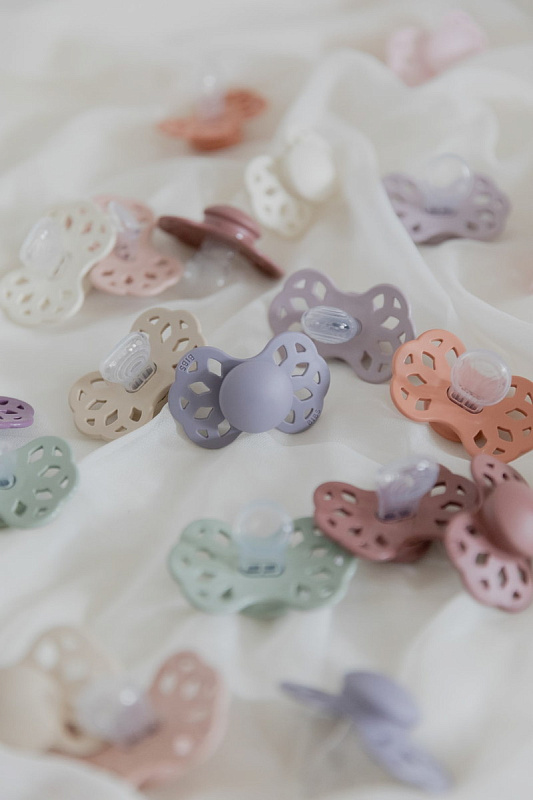 Пустышки BIBS изготавливаются из экологичных, на 100% безопасных материалов. Сосок выполнен из гипоаллергенного силикона без запаха и вкуса, а накладка (шилдик) — из полипропилена. Силиконовая пустышка обладает высокой прочностью и хорошо массирует дёсны во время прорезывания зубов. Дизайн накладки продуман таким образом, чтобы минимизировать контакт с чувствительной и нежной кожей вокруг рта ребенка.