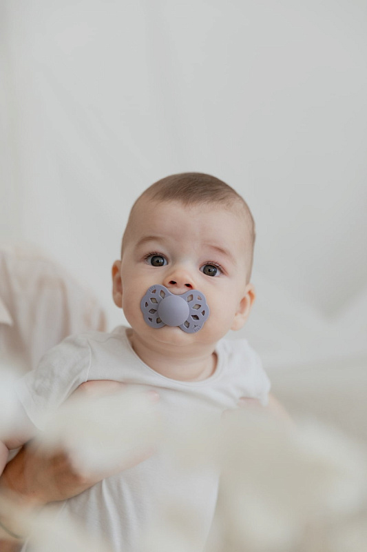 Дизайн пустышки Infinity вдохновлен красивой и непредсказуемой скандинавской природой. Симметричный плоский сосок каплевидной формы способствует правильному положению языка во время сосания и развитию челюстно-лицевых мышц малыша.