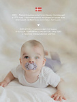Дизайн пустышки Infinity вдохновлен красивой и непредсказуемой скандинавской природой. Симметричный плоский сосок каплевидной формы способствует правильному положению языка во время сосания и развитию челюстно-лицевых мышц малыша.
