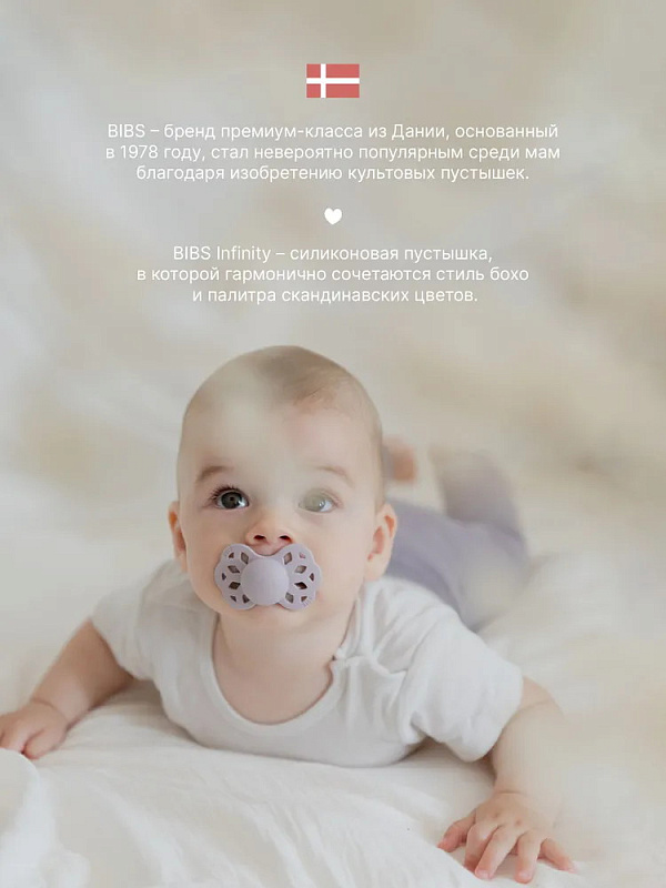 Пустышки BIBS изготавливаются из экологичных, на 100% безопасных материалов. Сосок выполнен из гипоаллергенного силикона без запаха и вкуса, а накладка (шилдик) — из полипропилена. Силиконовая пустышка обладает высокой прочностью и хорошо массирует дёсны во время прорезывания зубов. Дизайн накладки продуман таким образом, чтобы минимизировать контакт с чувствительной и нежной кожей вокруг рта ребенка.