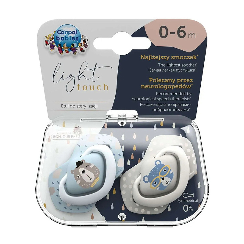 Пустышка силиконовая Canpol babies Bonjour Paris симметричная 0-6 мес 2 шт 22/647 голубой