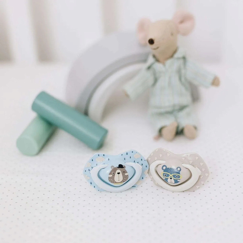 Легкие сенсорные пустышки доступны в нескольких уникальных коллекциях и в различных размерах - они растут вместе с вашим ребенком.