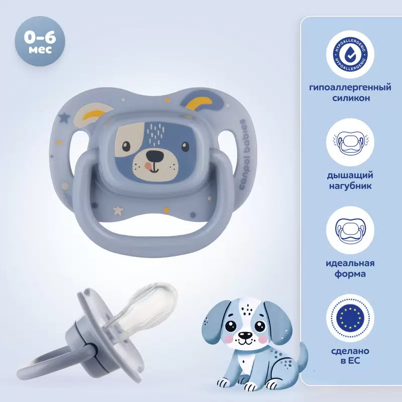 Пустышка силиконовая Canpol babies Cute Animals симметричная 0-6 мес 34/924 голубая собачка