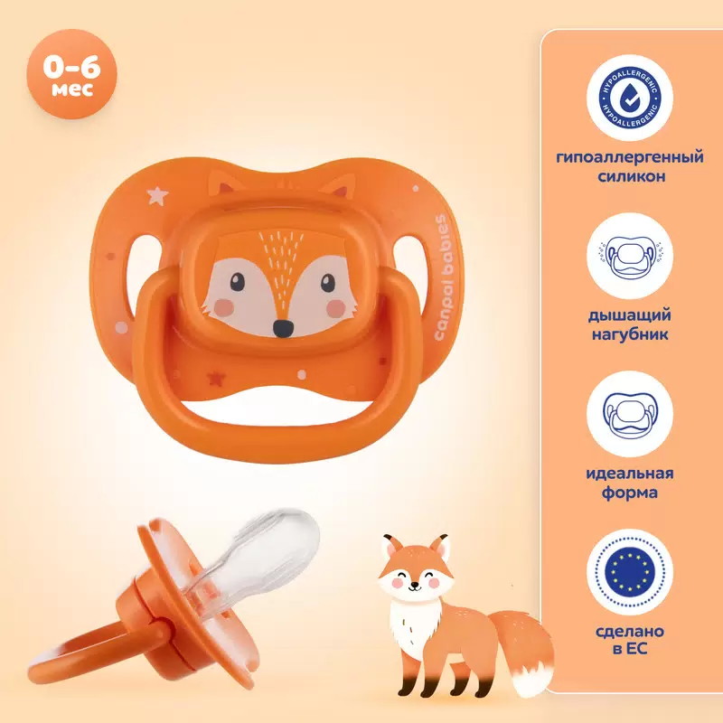 Пустышка силиконовая Canpol babies Cute Animals симметричная 0-6 мес 34/924 оранжевая лиса