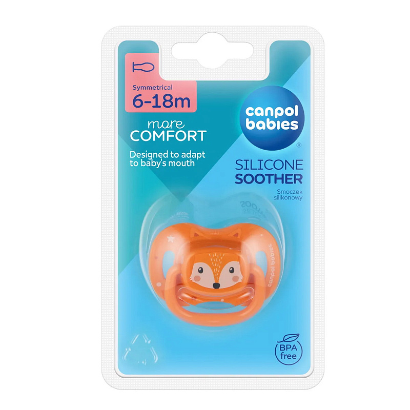 Пустышка силиконовая Canpol babies Cute Animals симметричная 6-18 мес 34/925 оранжевая лиса