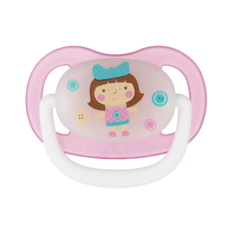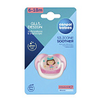 Соска пустышки имеет анатомическую форму, которая не влияет на формирование неправильного прикуса у малыша и обеспечивает свободное движение языка во рту. Благодаря специальным отверстиям на корпусе пустышки, она хорошо вентилируется, тем самым не вызывает раздражения вокруг рта малыша. Предназначена для детей от 6 до 18 месяцев.