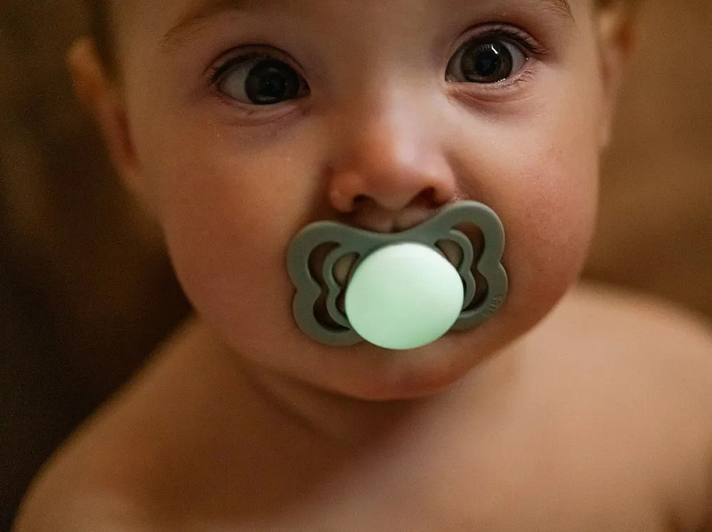 Накладка пустышки Couture Glow излучает мягкий свет и её легко найти в тёмной комнате. Достаточно двух минут под лампой, чтобы «зарядить» пустышку. Свечение накладке придают кристаллы люминофоров.