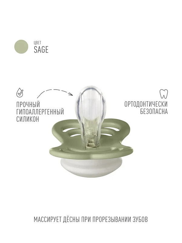Пустышка силиконовая ночная Bibs Supreme Glow, 0+ 410270 Sage