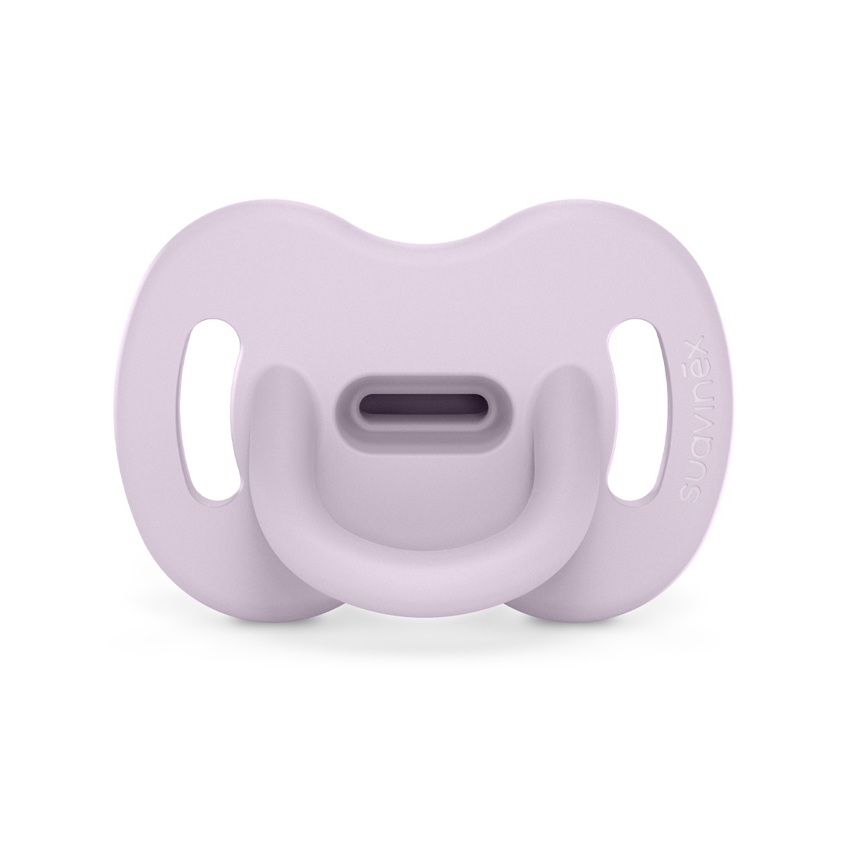 Физиологическая детская пустышка Suavinex Colour Essence SX PRO имеет особую конструкцию. Она располагается во рту ребенка таким образом, чтобы не препятствовать развитию естественного правильного прикуса. По бокам корпуса пустышки расположены вентиляционные отверстия, обеспечивающие хорошую циркуляцию воздуха. Это предотвращает раздражение нежной кожи малыша в области рта. Сверхмягкий силикон имитирует форму материнского соска, создавая у ребенка комфортные ощущения в процессе сосания. За счет пескоструйной обработки силикон надежно защищен от прилипания пыли и ворса.