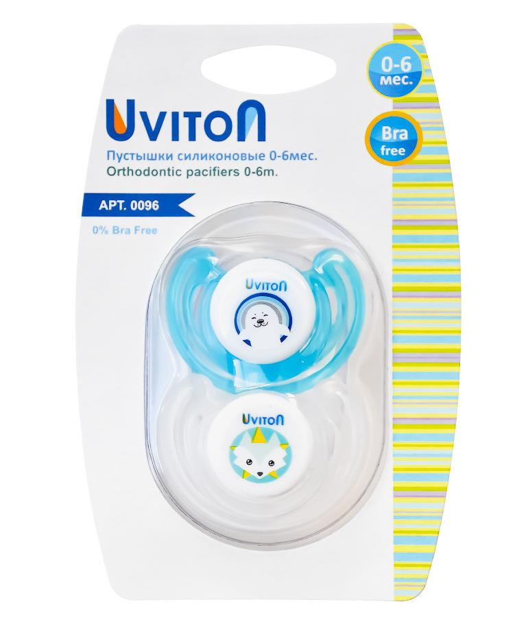 Пустышка Uviton ортодонтическая 6-12 мес 2 шт 0097 котик/волчонок