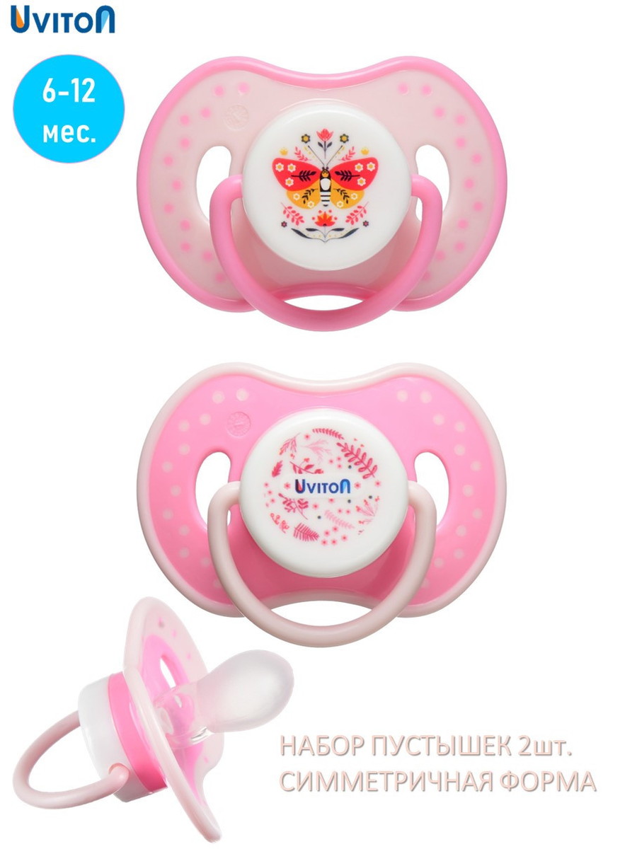 Пустышка Uviton Zoo ортодонтическая c колпачком, 6-12 мес, 2 шт 0230/02 бабочкаНет оценокХарактеристики