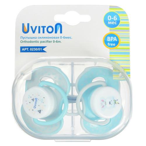 Пустышка Uviton Zoo ортодонтическая c колпачком, 6-12 мес, 2 шт 0230/02 медведьНет оценокХарактеристики