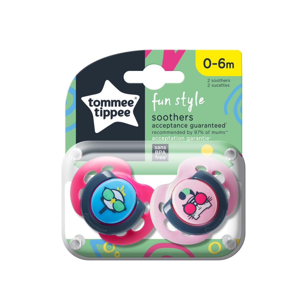 Пустышки Tommee Tippee Fun Style 0-6 мес. 2шт PUI/PISICA розовый/светло-розовый