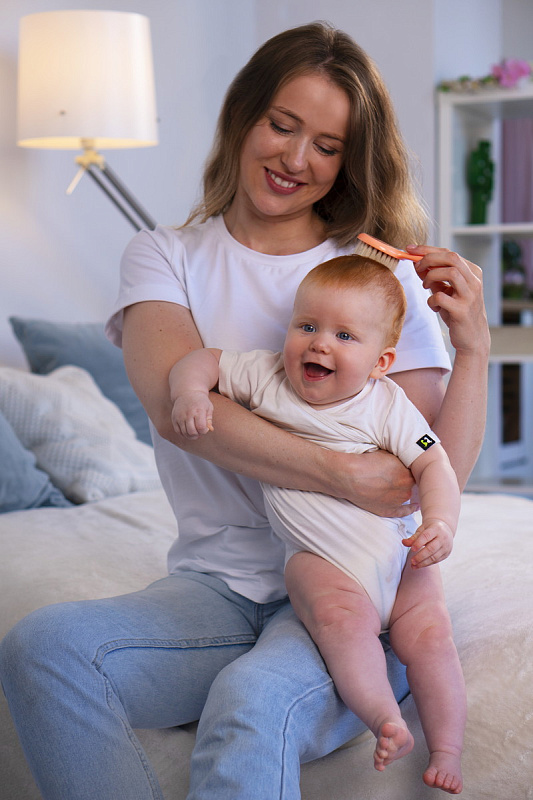 Расческа-щетка с мягким ворсом из натуральной овечьей шерсти и удобный гребешок ROXY-KIDS предназначены для малышей и новорожденных. Мягкая пушистая щетка имеет удобную эргономичную ручку, улучшает кровообращение кожи головы, не царапая её. Нежный массаж расслабляет и успокаивает перед сном, а стимуляция волосяных луковиц ускоряет рост первых волос малыша. Натуральная щетка из овчины позволит пригладить волосики и придать им аккуратный вид. А с помощью гребешка с частыми закругленными зубчиками удобно расчесывать запутавшиеся и скатавшиеся волосы. Набор для расчесывания ROXY-KIDS отличает приятный дизайн, прочность и экологичность материалов. Гребешок и расческа-щетка отлично дополняют друг друга, и в дальнейшем с их помощью вы сможете научить ребенка причесываться самостоятельно.