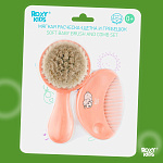 Расческа-щетка мягкая и гребешок Roxy-Kids ворс из овечьей шерсти RBH-003-O персиковый
