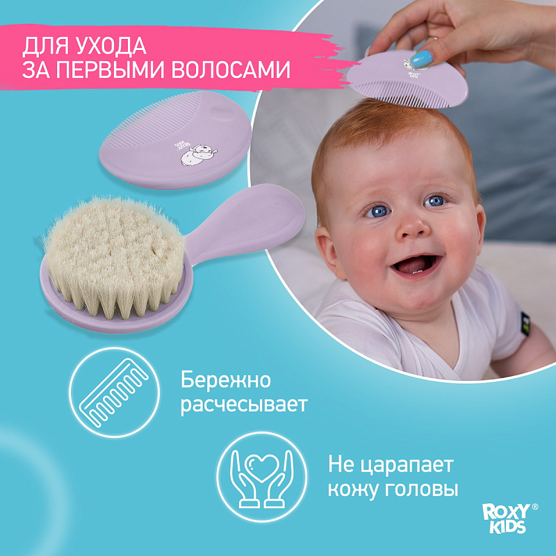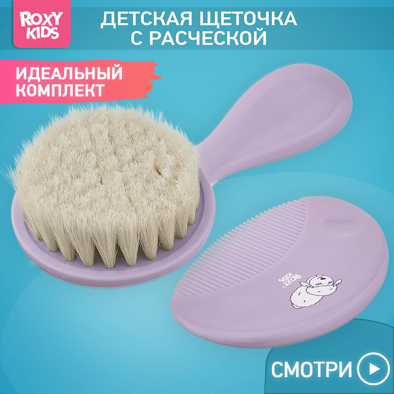Расческа-щетка мягкая и гребешок Roxy-Kids ворс из овечьей шерсти RBH-003-V лавандовый