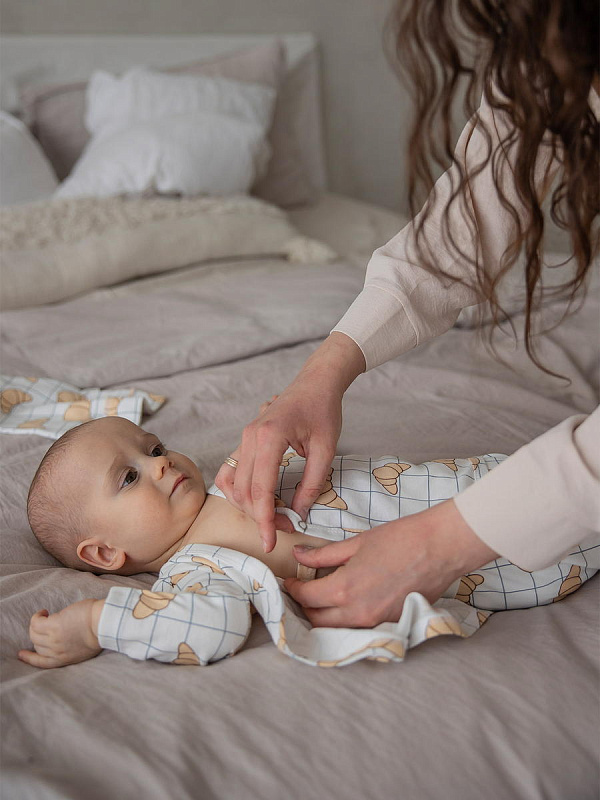 Распашонка Mjölk [мьёльк] отлично садится по фигуре благодаря застежке на запах и двум кнопкам, ребёнку в ней не жарко, он не потеет. Материал приятный на ощупь, эластичный, лёгкий, гигроскопичный, "дышит" и не вызывает аллергии. Кнопки удобно расположены сбоку, что облегчает застёгивание изделия на малыше. Распашонка в 56-м размере оснащена антицарапками.