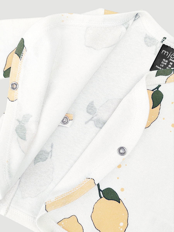 Распашонка Mjölk [мьёльк] отлично садится по фигуре благодаря застежке на запах и двум кнопкам, ребёнку в ней не жарко, он не потеет. Материал приятный на ощупь, эластичный, лёгкий, гигроскопичный, "дышит" и не вызывает аллергии. Кнопки удобно расположены сбоку, что облегчает застёгивание изделия на малыше. Распашонка в 56-м размере оснащена антицарапками.