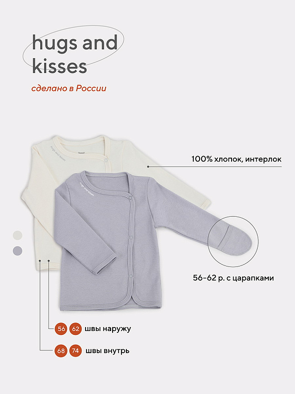 Распашонка Rant Hugs and Kisses 53/54 2 шт Arctic Grey 74