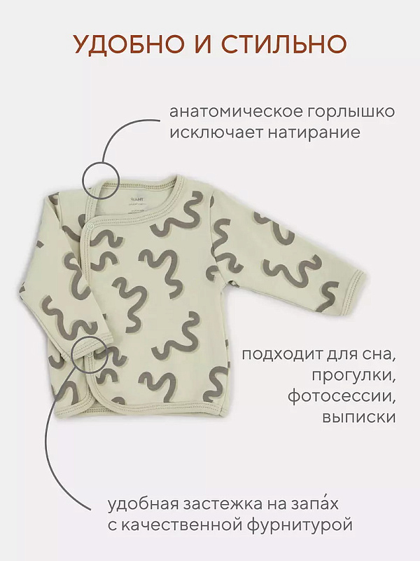Распашонки из этой коллекции дополнены кнопочками, чтобы полочки не “разлетались” и малышу было комфортно.