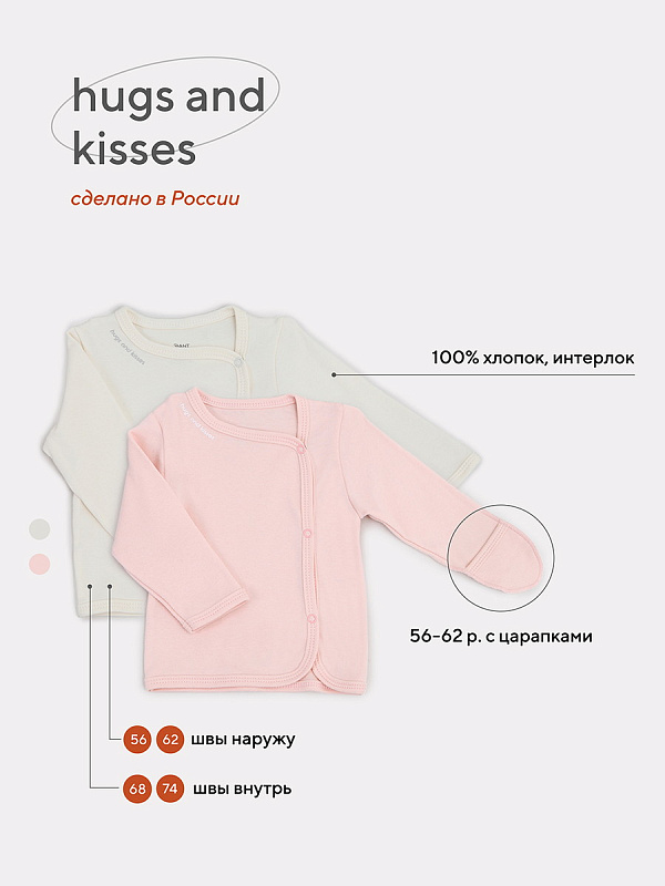 Распашонка Rant Hugs and Kisses 53/54 2 шт Soft Pink 74