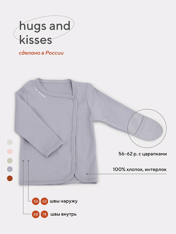 Свежая коллекция Hugs and kisses покажет всю вашу нежность и заботу. Актуальные однотонные расцветки, лаконичный дизайн, качественная фурнитура в тон и хлопок премиум класса (интерлок-пенье).