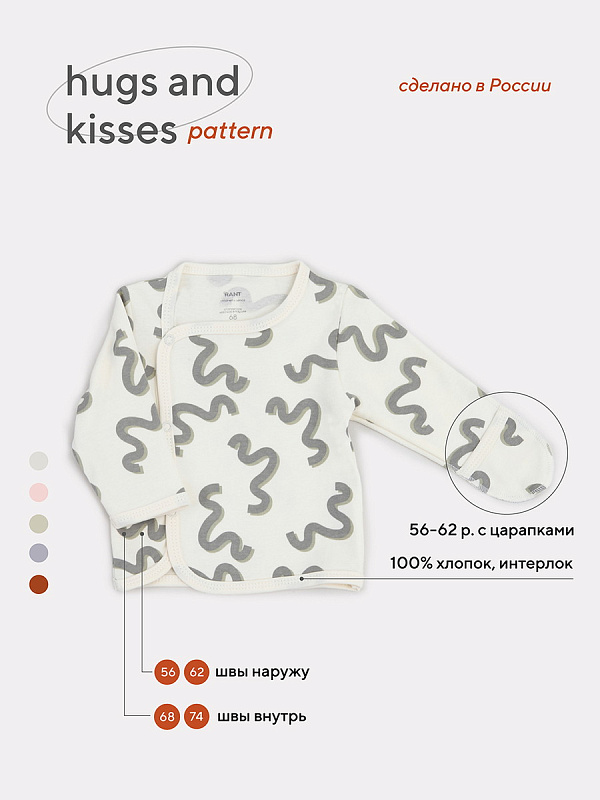 Одежда Rant Hugs and Kisses Pattern с особой нежностью создана для новорожденных и малышей постарше. Биоморфные принты, трендовые цвета, лаконичное исполнение, премиальные ткани - визитная карточка нашей распашонки.