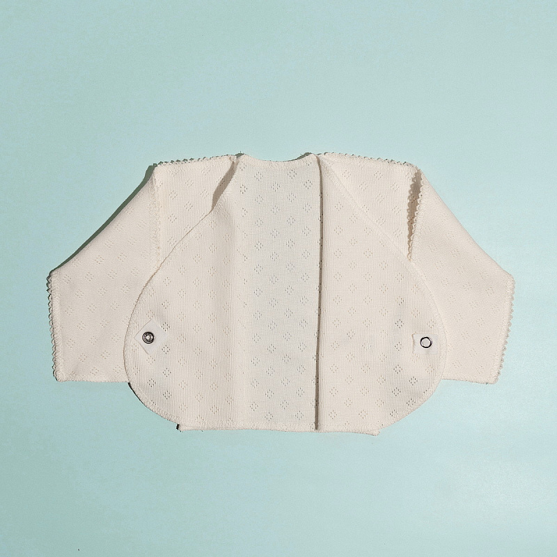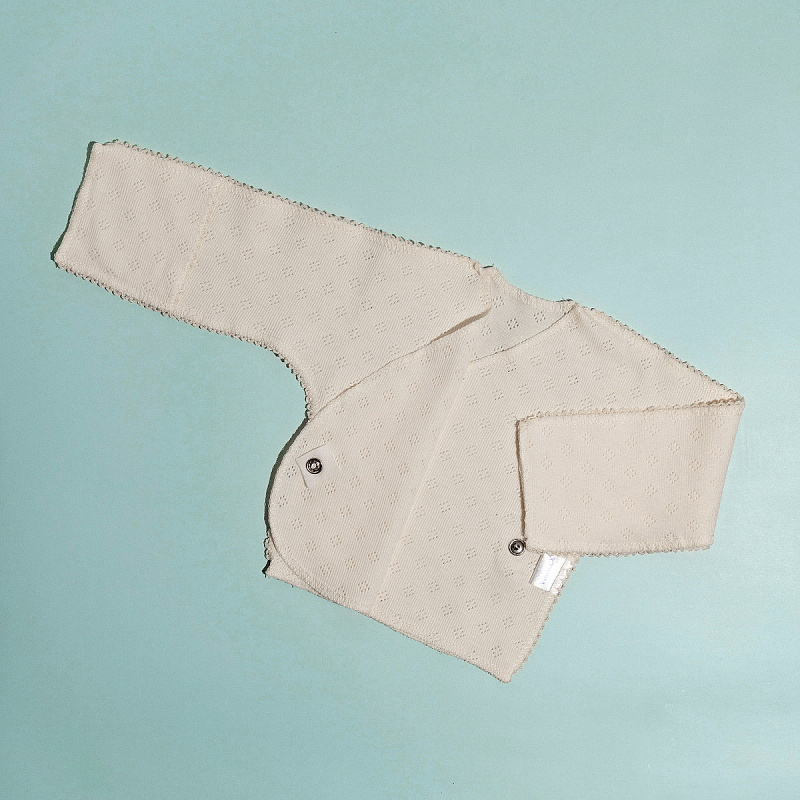 Уход за распашонкой очень простой: ручная или деликатная машинная стирка при температуре до 40 градусов, без отбеливания и отжима.