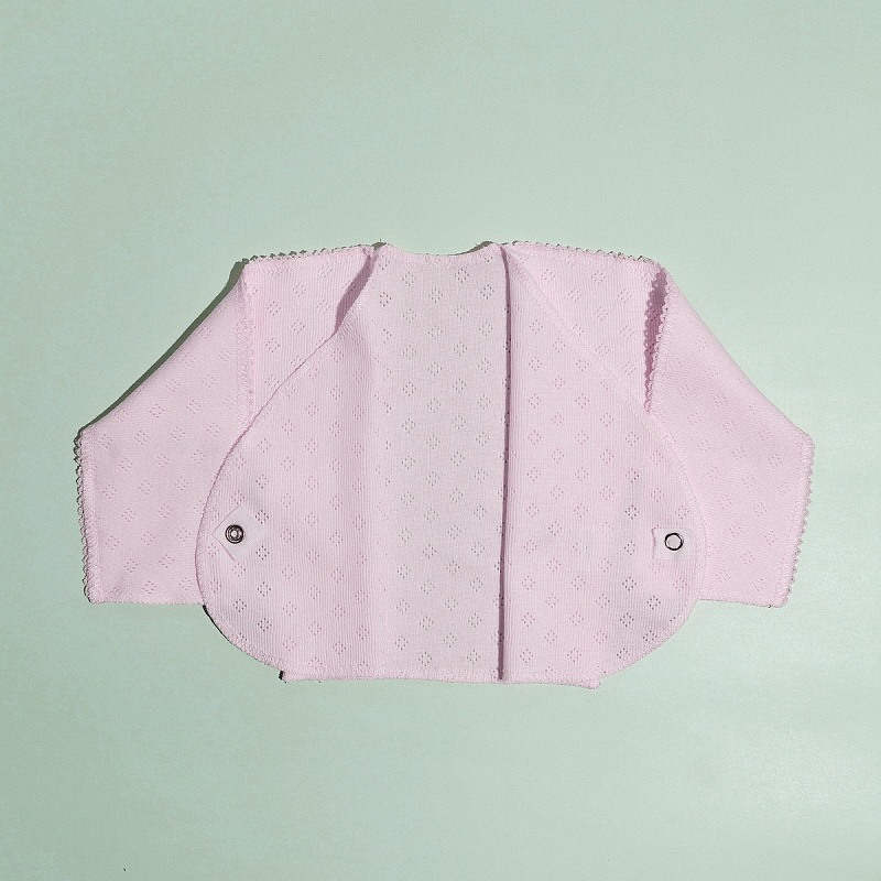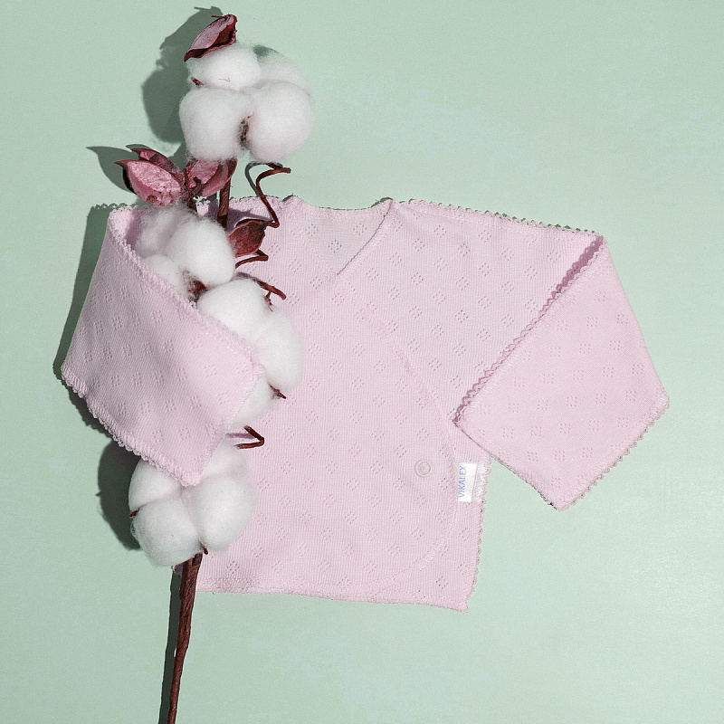 Уход за распашонкой очень простой: ручная или деликатная машинная стирка при температуре до 40 градусов, без отбеливания и отжима.
