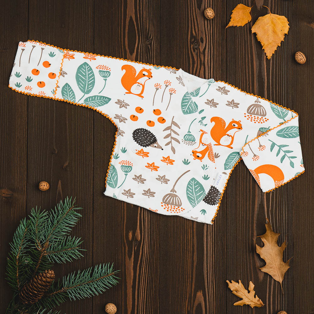 Распашонка из мягкого трикотажного материала, благодаря запаху легко надевается на ребёнка. Швы изделия выполнены с наружной части и не вызывают дискомфорта. Натуральная ткань хорошо пропускает воздух, позволяя телу дышать.