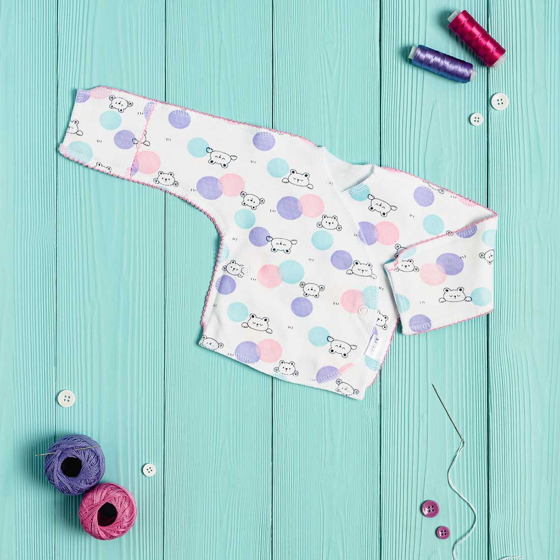 Распашонка из мягкого футера, благодаря запаху легко надевается на ребёнка. Швы изделия выполнены с наружной части и не вызывают дискомфорта. Натуральная ткань хорошо пропускает воздух, позволяя телу дышать.