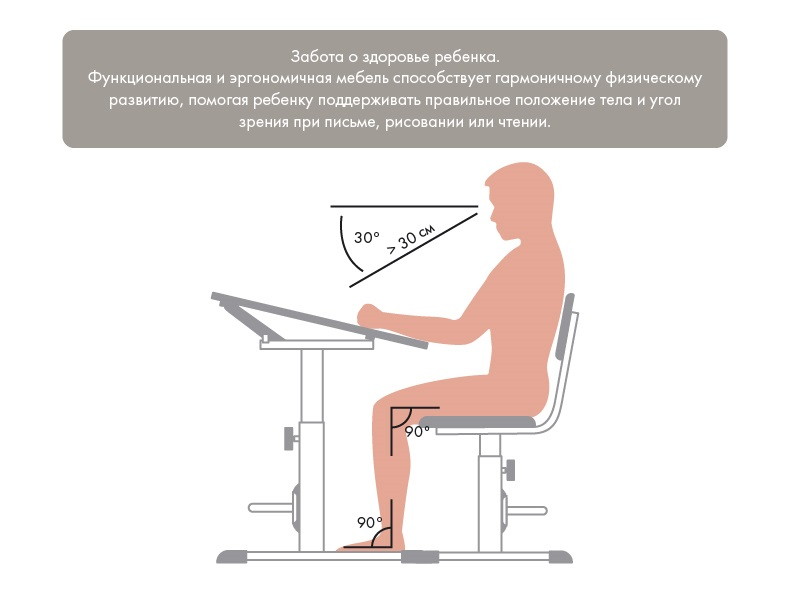 - стол регулируется в 5 положениях по высоте, подстраиваясь под рост ребенка, что препятствует развитию сколиоза и других проблем с позвоночником
