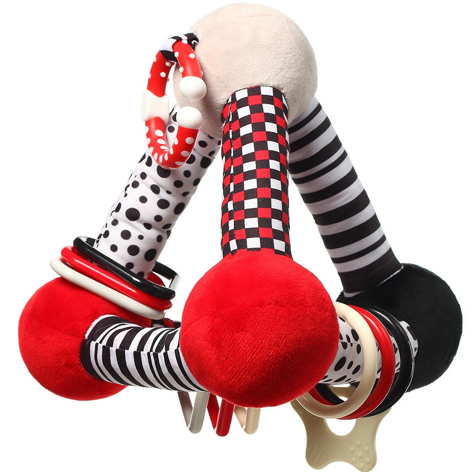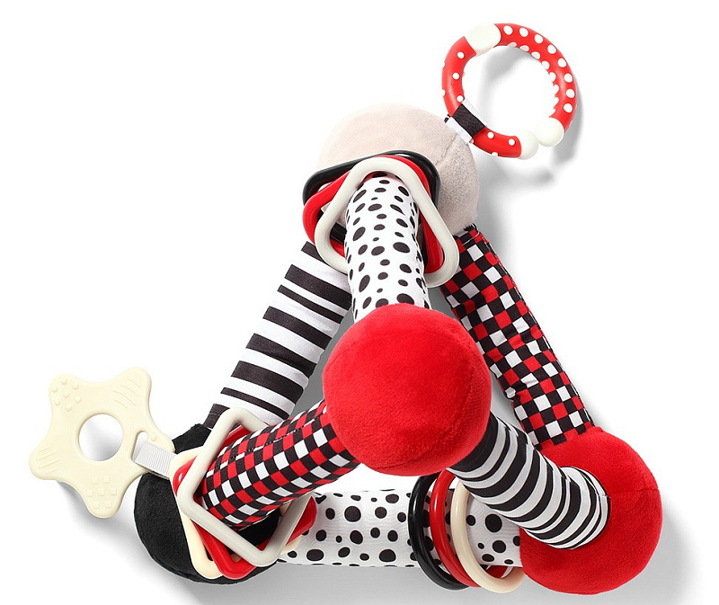 - развивает когнитивные навыки посредством стимулирующих форм, текстур и звуков