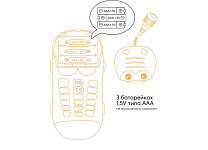 • Данное изделие работает на 3 батарейках 1,5V типа АA. (не включены в комплект).